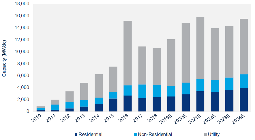 FIGURE: U.S. PV Installation Forecast, 2010-2024E