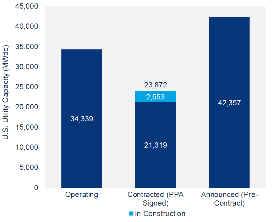 In addition, after the uncertainty of the Section 201 tariffs passed, 13.2 GW of utility solar power purchase agreements were signed in 2018, though most have expected commercial operation dates in years after the tariffs have stepped down. The contracted pipeline peaked in Q3 2018 at 25.3 GW, representing the highest in the history of U.S. solar.