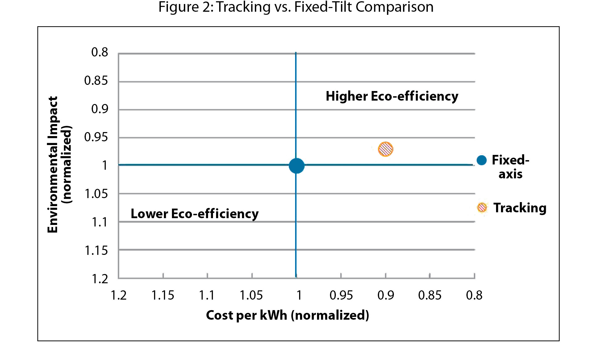 Depending on project design, site latitude and diffuse light conditions, use of tracking systems can be an eco-efficient strategy for improving the sustainability of PV systems, potentially lowering both costs and lifecycle environmental impacts per kWh generated. Eco-efficiency is a guiding principle for sustainable innovation that can further accelerate PV deployment. S