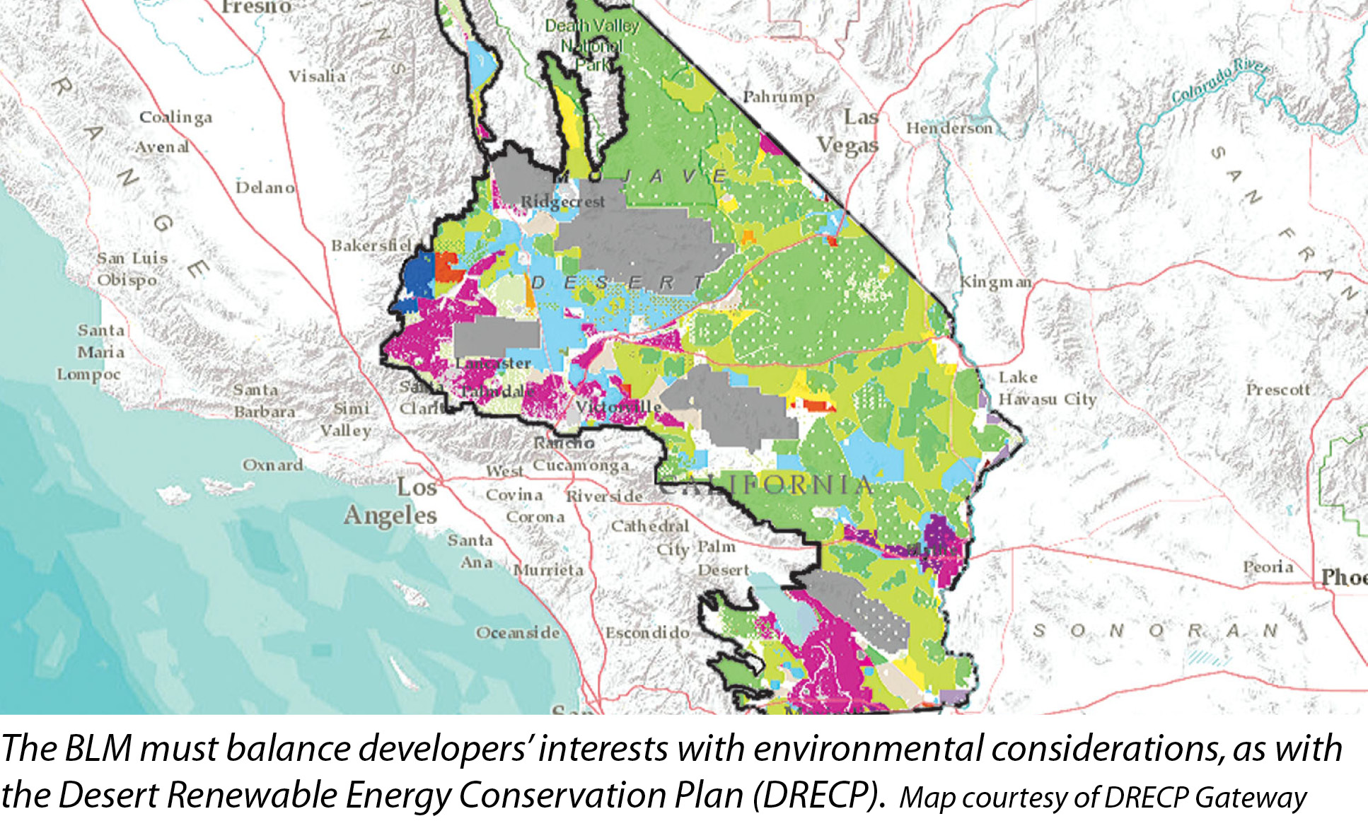 The proposed rule would build on the solar energy zone (SEZ) concept of the BLM’s 2012 Solar Energy Plan by creating a new DLA land use plan designation for areas identified as preferred locations for solar or wind energy development. DLAs would be created through the BLM’s land use planning process and attendant National Environmental Policy Act (NEPA) review.