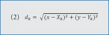 The pair of equations (6) and (7) cannot be solved explicitly for x and y because dk on the right-hand side of each equation depends on both x and y through equation (2). However, the pair of equations can be solved iteratively, and the solutions converge to the optimal point (x,y).